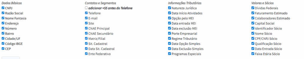 CNAE principal e secundário, regime tributário, porte empresarial, número estimado de colaboradores, faturamento, localização e até dados de contato e sócios; tudo em um só lugar!