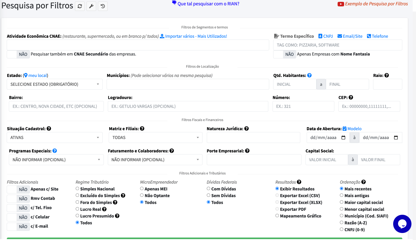 Crie listas personalizadas com a IA B2B R.I.A.N., filtros inteligentes e alta segmentação.