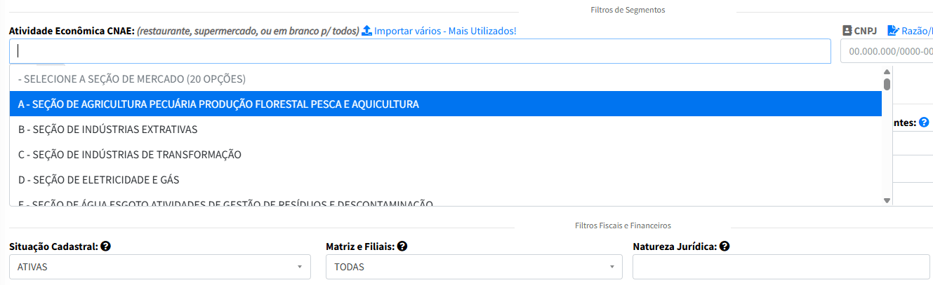 Ferramentas que  permitem filtrar empresas por CNAE, porte, localização, setor e até comportamento de mercado.